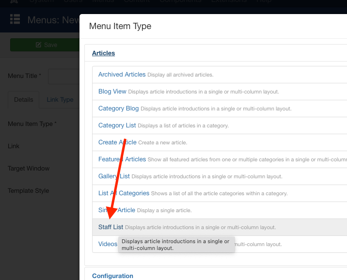 So I need a version of blog_info.php with those two lines removed to apply to the menu item /Home/Staff.