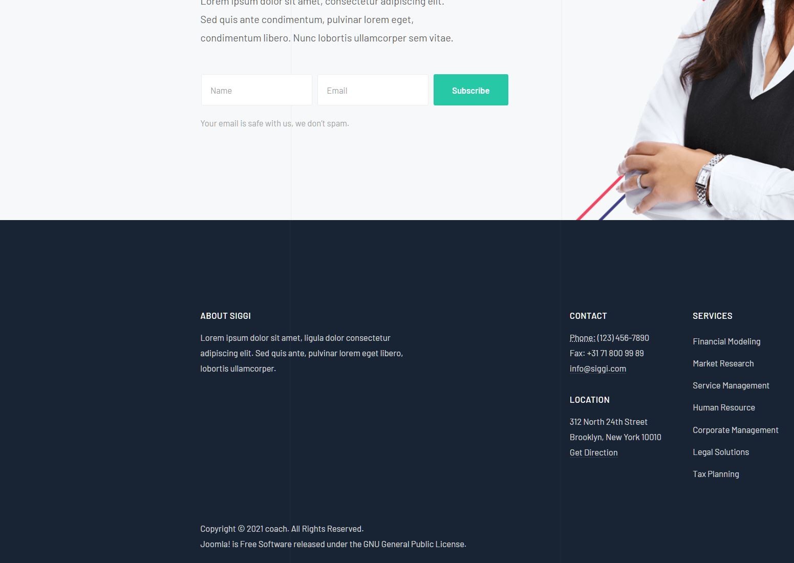 If to open back-end of About Siggi’s module, and without any changing in the settings, just click the Save button, as a result on the home page icons of Facebook, Twitter, etc. disappear.