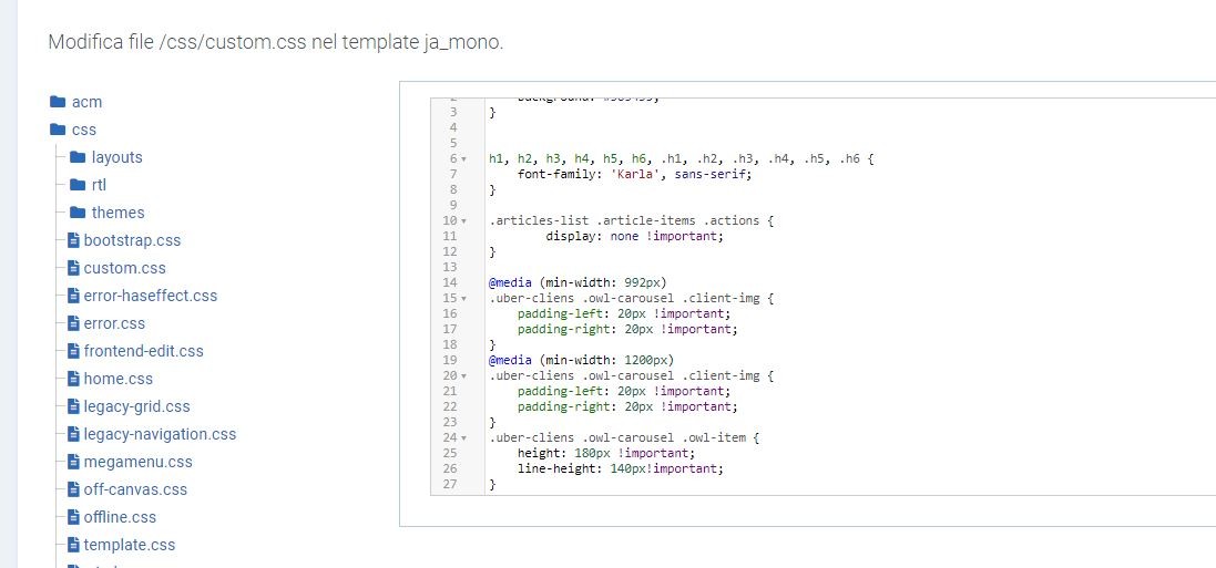 Or another place to override css is the css file in local folder of template: