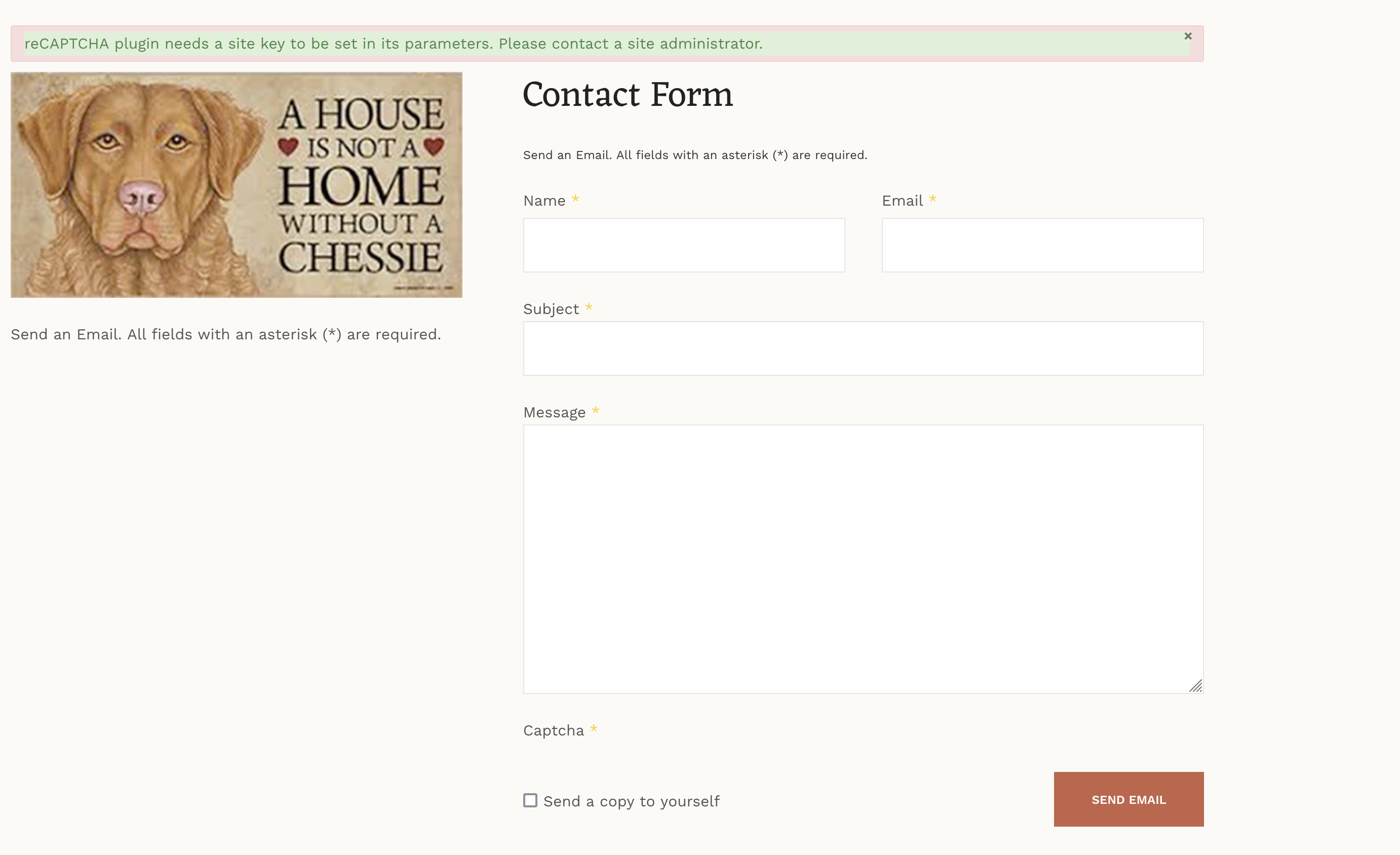 On my site, Contact Us page ( https://www.chesapeakes.uk/index.php/about/contact-us ) I get the following error: