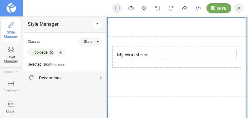 With the page body selected, I delete the 'jpb-page' class in the style manager. After saving and reopening the editor, the class is there again. With this class, unfortunately, styles of the base template are overwritten.