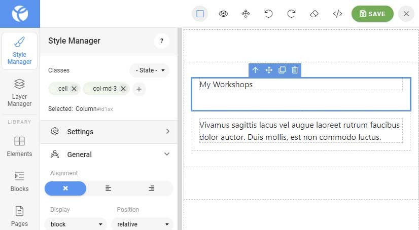 I also tried to change the default classes for columns or containers. For example, I deleted the class 'col' and inserted 'col-md-3' instead. After reopening the page the default class 'col' was there again ('col-md-3' as well) and overwrote the intended column behavior.