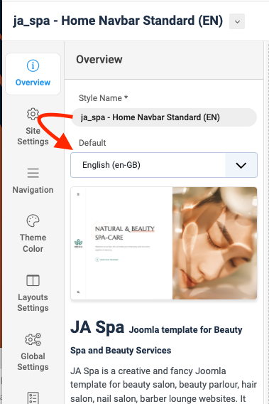 I can login now and see that the template styles are not configured properly for multilingual site. Pls check out this guideline for more details: https://www.joomlart.com/documentation/t4-framework/multilingual-configurations#template-style_jadoc