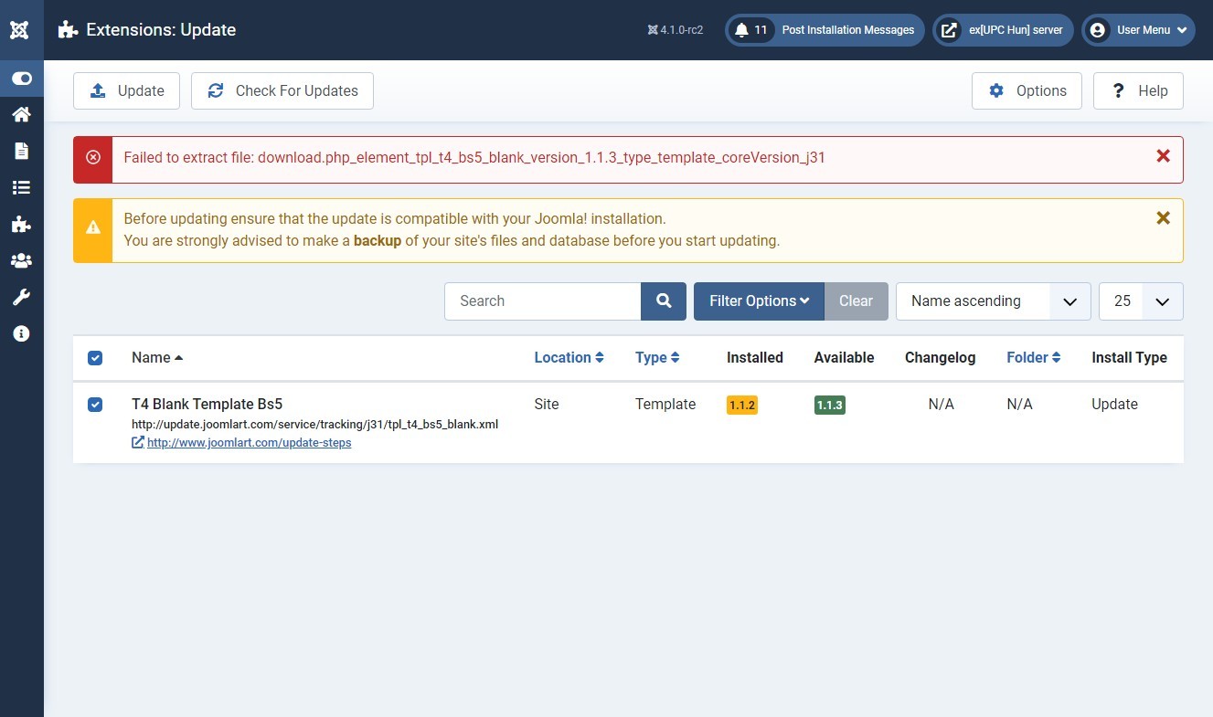 It seems that you're trying to update T4 Blank template via default Joomla update, we recommend to update our template via JA Extension manager, you can install this component and update template: https://www.joomlart.com/member/downloads/joomlart/t4/t4-framework