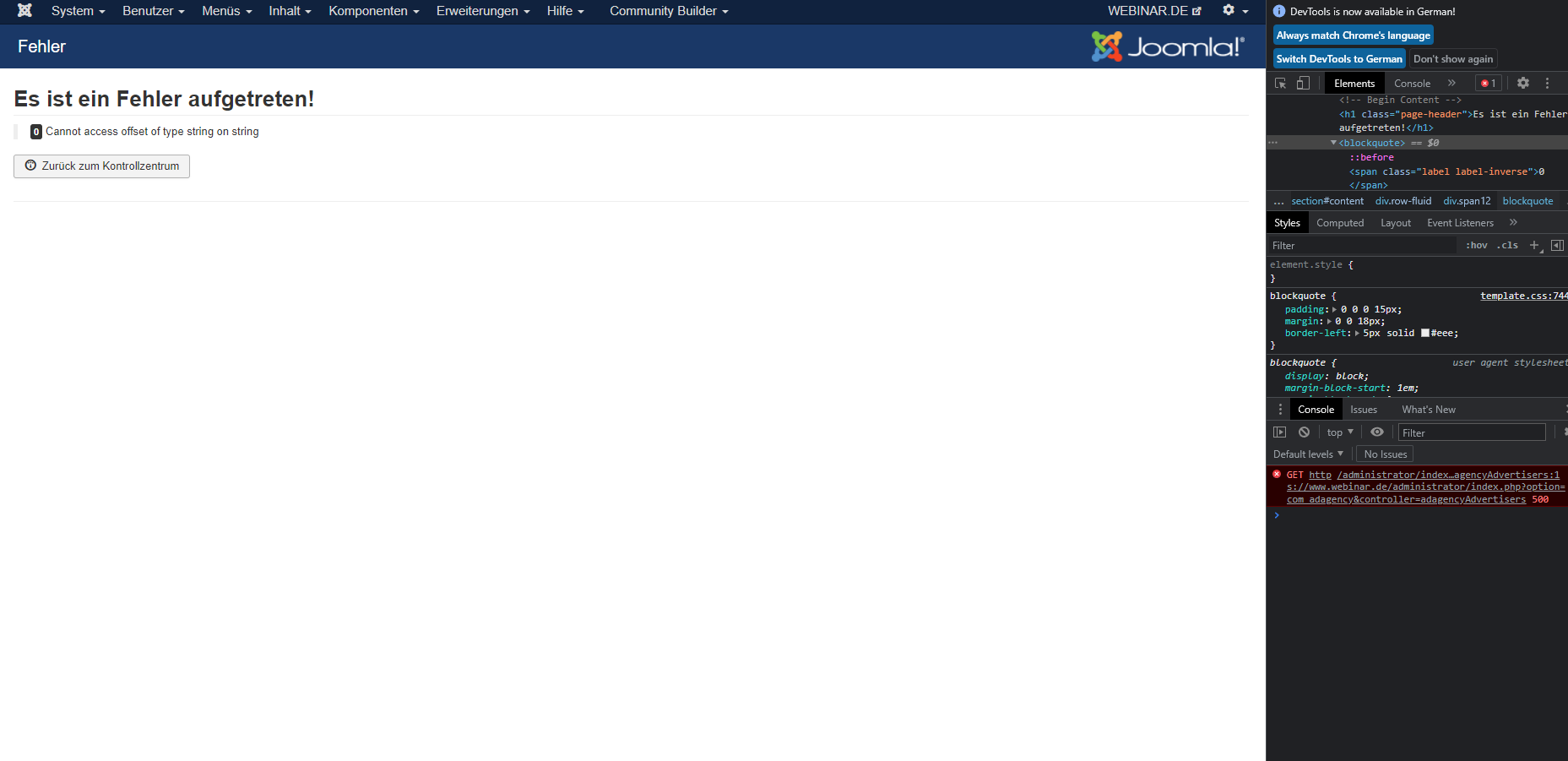 Another Error occures when i click on "Geo Targeting" -> Channels or "Add New Ad" -> Standard, Flash, Affiliate Ad, HTML, Video..