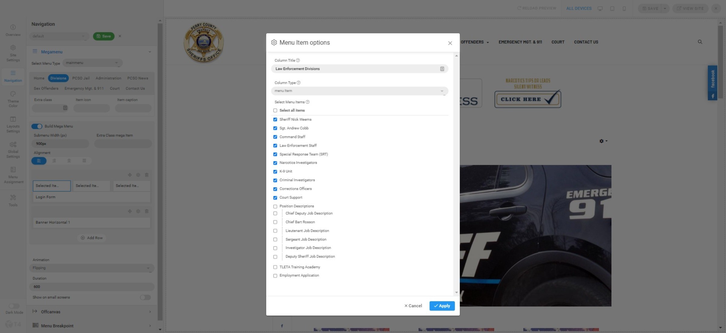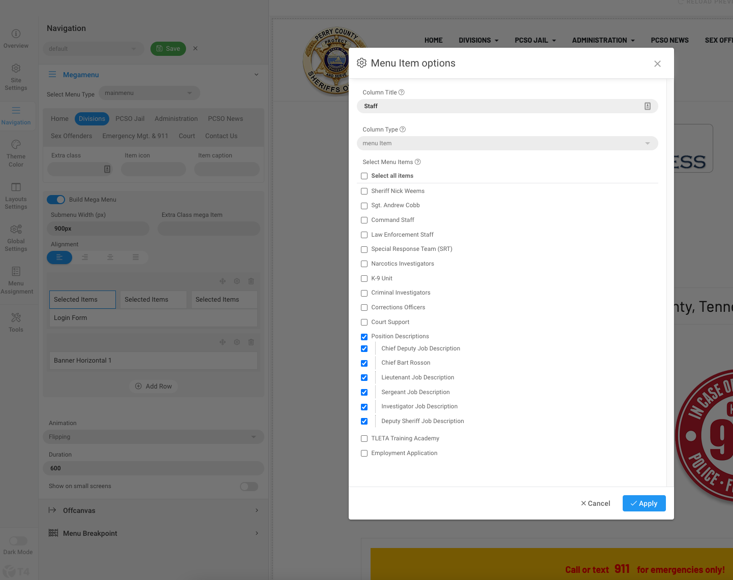 I added the menu item, then went to template design for default. From there I tried to add the menu item to the first column under Divisions of main menu. I hope this is clear enough. I cannot afford to upgrade the template at this time, I've got too much time invested, and we are getting ready to launch. I know there was an upgrade, but it kept breaking the entire site because of the T4 plugin. There was supposed to be a fix for this, but instead I was told to wait and wait and wait. Then basically to upgrade to Joomla 4. I can't do that now.