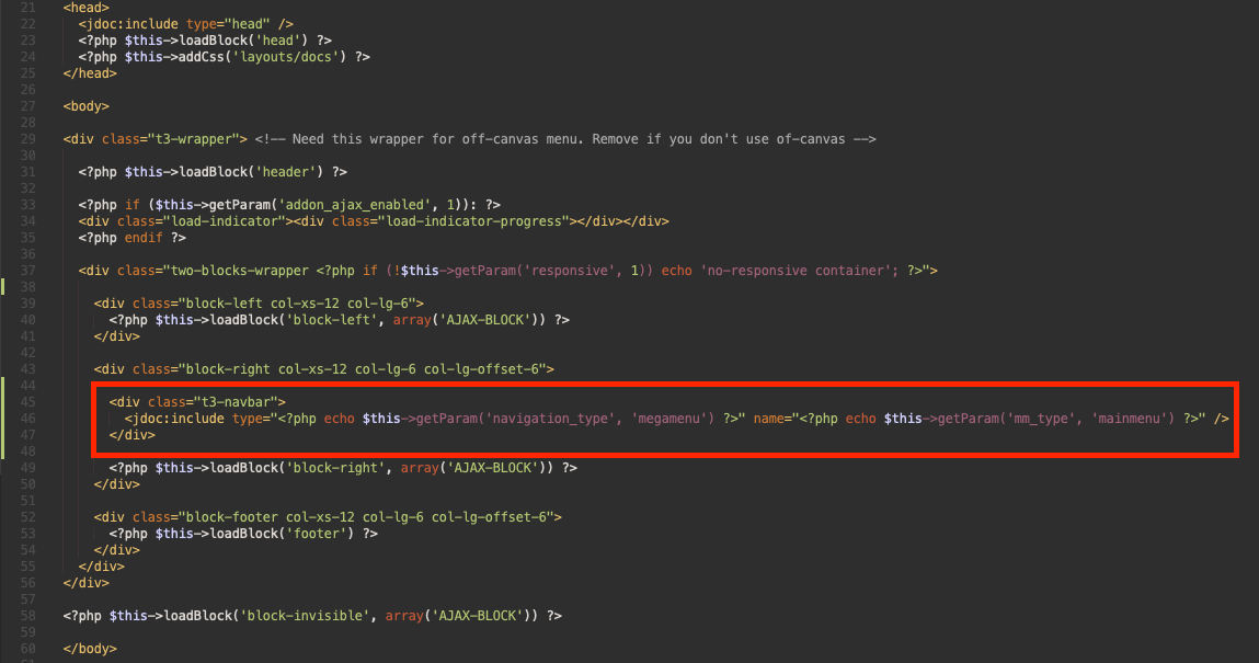 <jdoc:include type="<?php echo $this->getParam('navigation_type', 'megamenu') ?>" name="<?php echo $this->getParam('mm_type', 'mainmenu') ?>" />