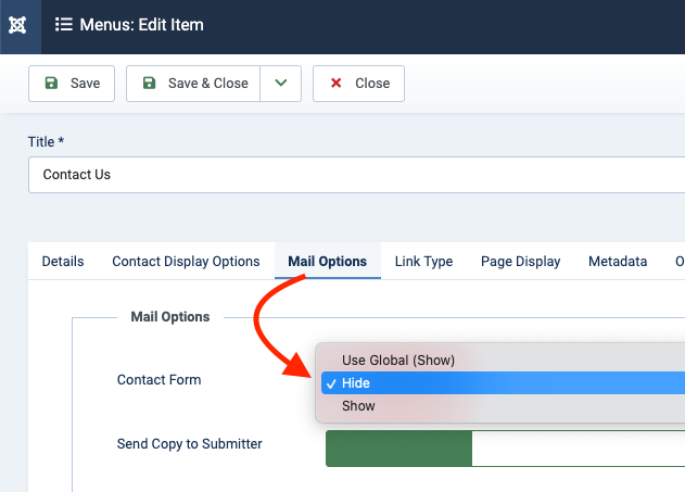 In Contacts is set up contact to hide both contact form and contact links. But they are still on my contact page: http://horgasztura-kisduna.hu/index.php/contact-us How can I remove contact form and links?