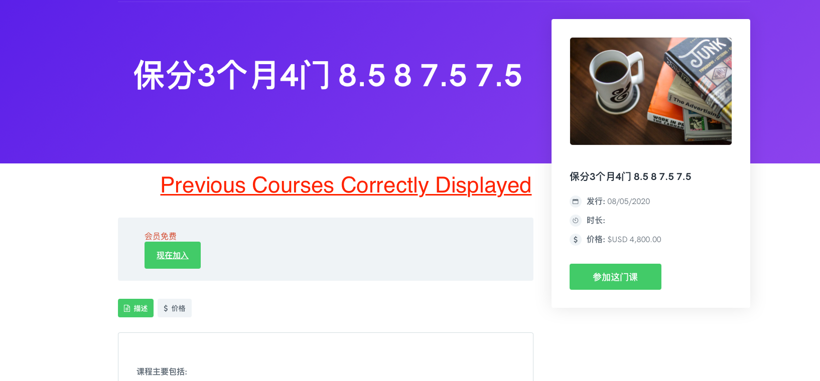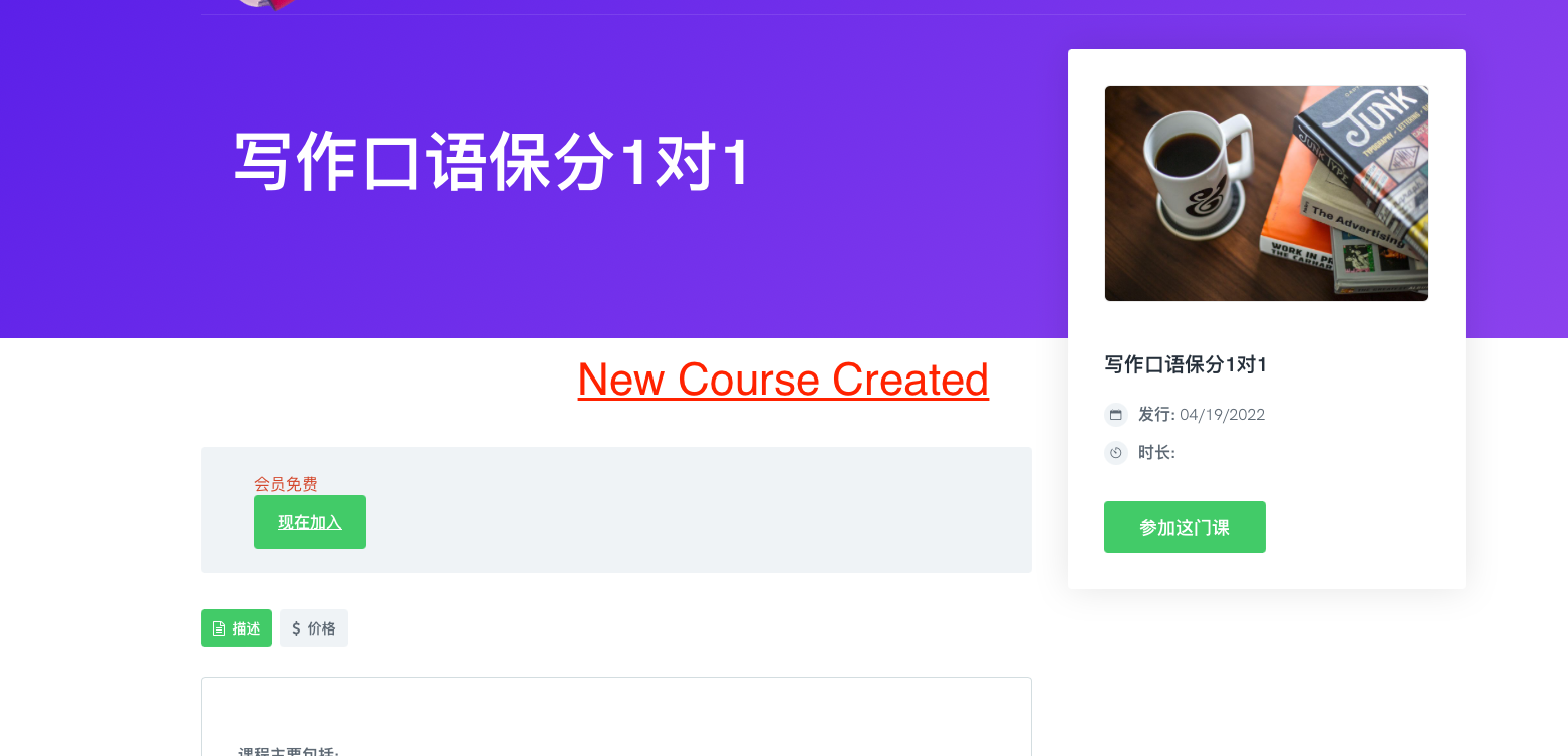 Course recently created is located here: website.com/courses/4-1-on-1/92-ielts-writing-speaking