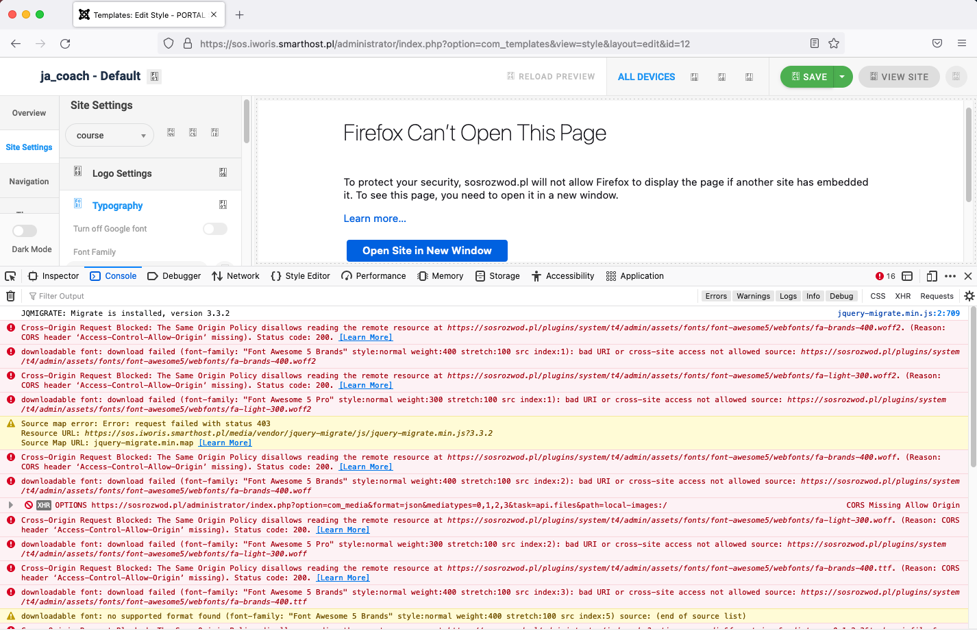 Saving settings to a template does not work. I change the fonts to 16px and back to 15px 🙁 other settings also do not want the template to remember My templates ja_coach