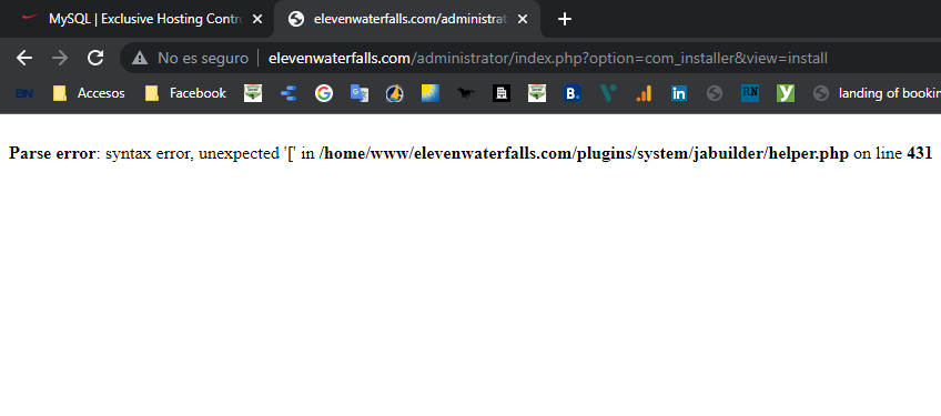 It appears after installed ja-builder-pkg_1.1.9 saguaros Please, let me see the Php version