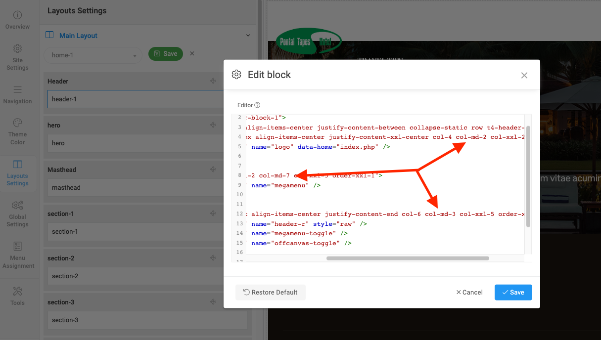 The logo in this template is declared with a max-height value: