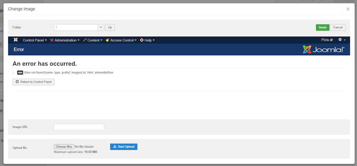 I'm using the latest version of JA Vital. When I'm in the Logo Settings of the Site Settings of the template and click Select to choose the Logo image, I get the following bug (I use an extension for the backend admin menu):