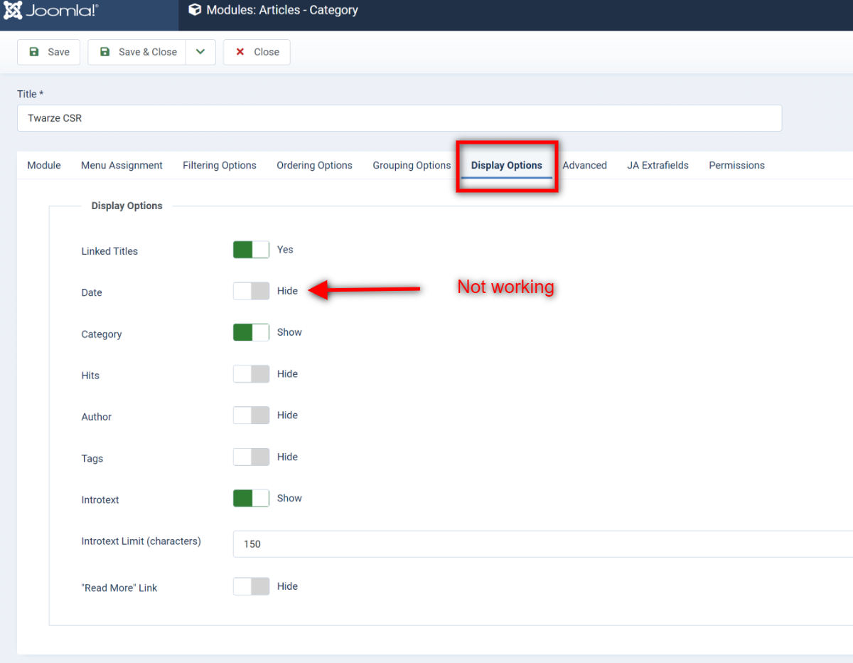 mod_articles_category - issue - Hide date cannot be used in the module. Now I comments this function. But this is only temporary solution.
