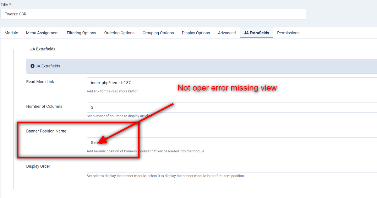 Ja Extra Fileds - Banner not working An error has occurred.