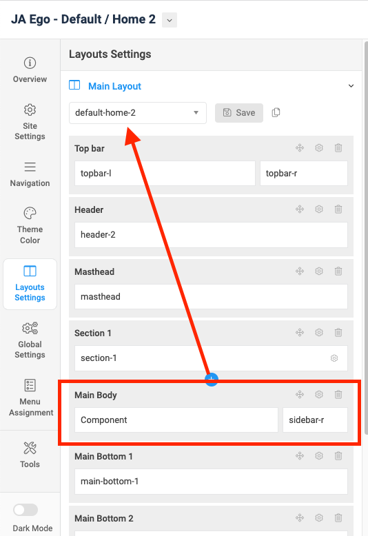 Of course, you can edit this 'home-2' layout and add the mainbody block there.