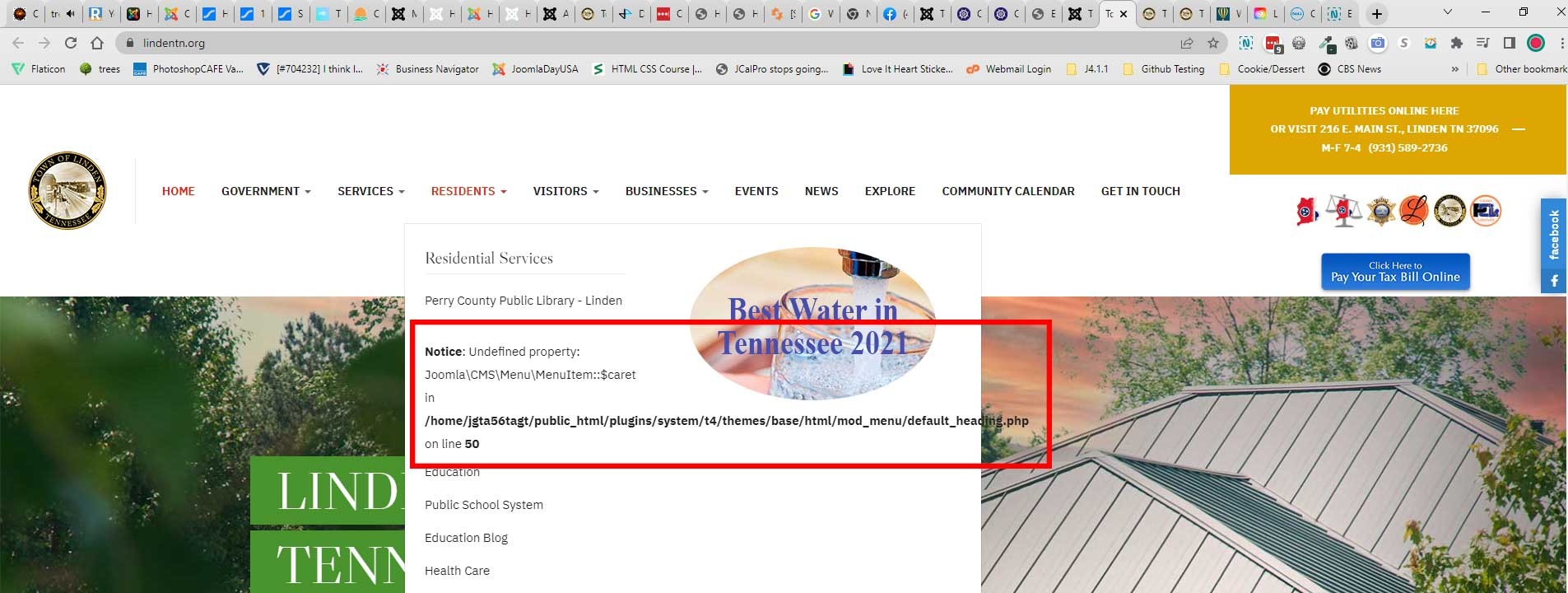 Here is what you see after the T4 update in the backend of Joomla, in the template editor, and what you see on the front end. You told me T4 was updated to remove the Editor button to make it run smoother. Well, as you can see, this is not working AT ALL! I removed the menu item on the left for the article Linden Best Water in Tennessee, and it is still showing the following error: