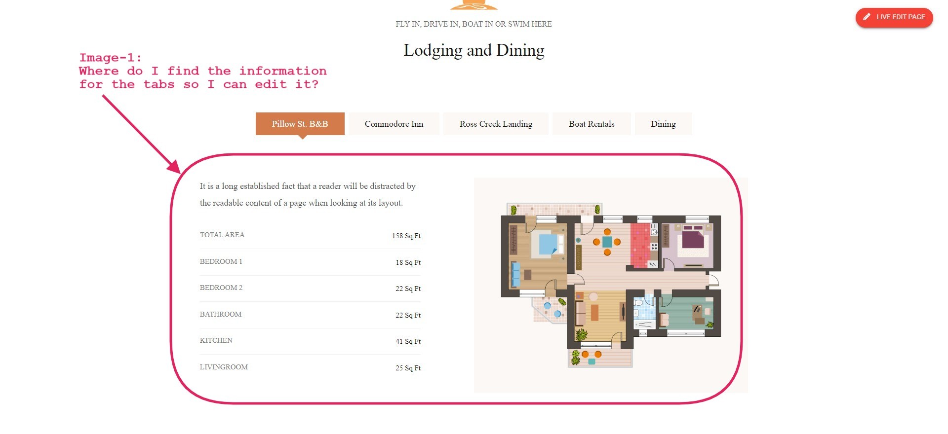 When I am accessing the site's only page, buildr.cityofclifton.com, for the Chamber of Commerce, I see a section I want to edit to use different information, but like the tabs and how they work. Here is a screenshot of that page portion: