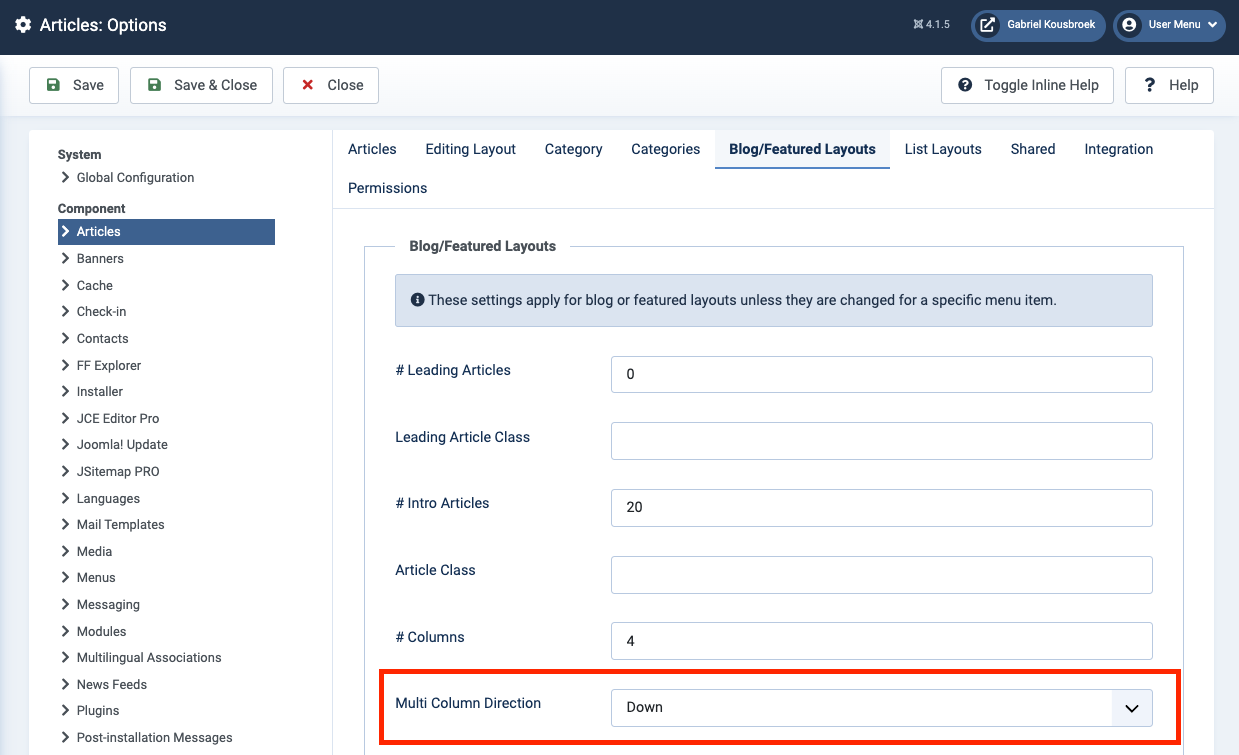 I've set the number of columns in the Blog/Featured Layouts of the Article options to 4. The category pages all show only one column. I can't find an option for this in the Simpli styles. Am I missing something? Edit: I tried the Cassiopeia template and the columns did show, so there seems to be something wrong with Simpli.