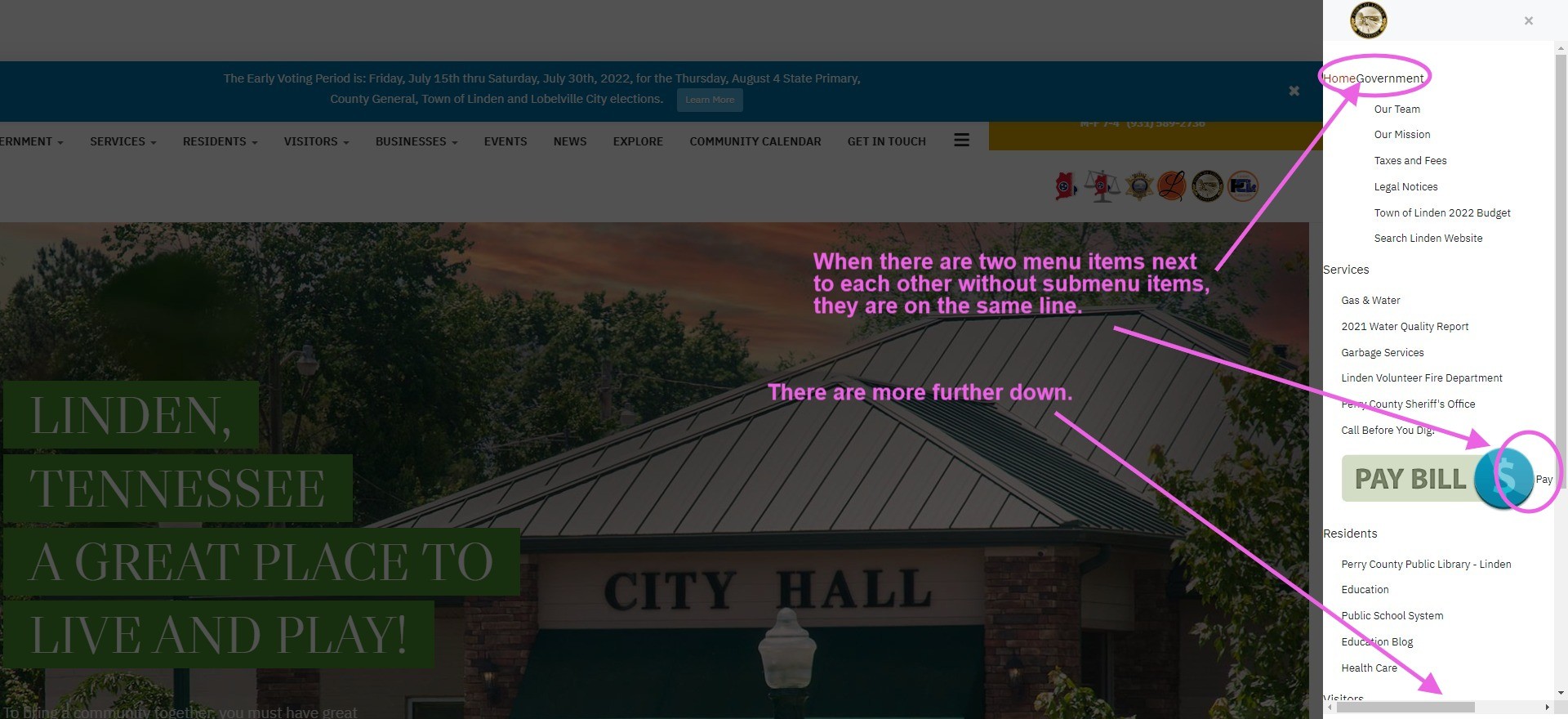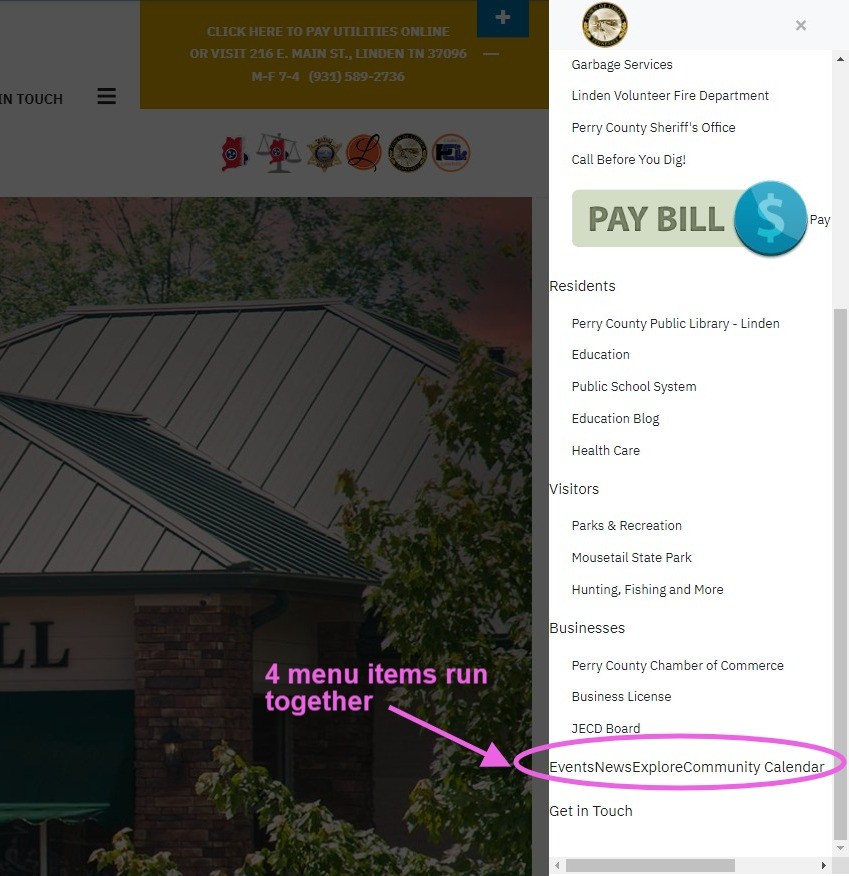 It's populating now, but there are some issues. When there are two or more main menu top level items in a row, they run them all together without spacing or new line. And where I had an image with a link to let people know where to pay their utilities, as a module in the main menu, it also displays the text with the button. Images attached: