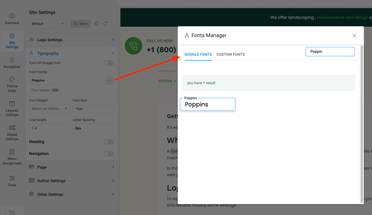 You can simply go to Backend >> Template styles >> JA Landscape >> Site settings >> Typography >> and change to Poppins font as you wish.