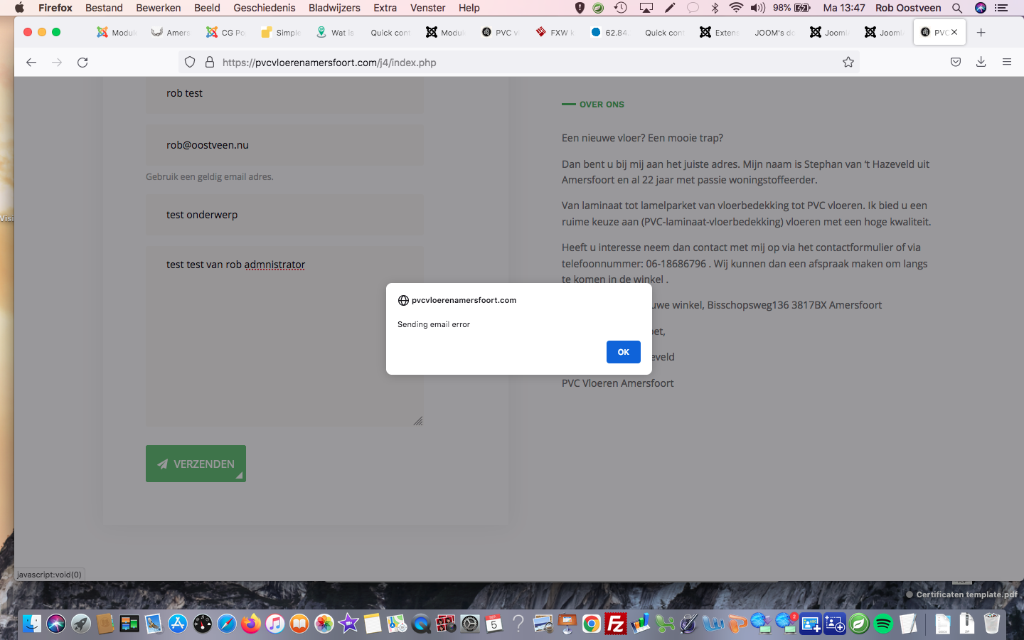 sending email error is the message I get