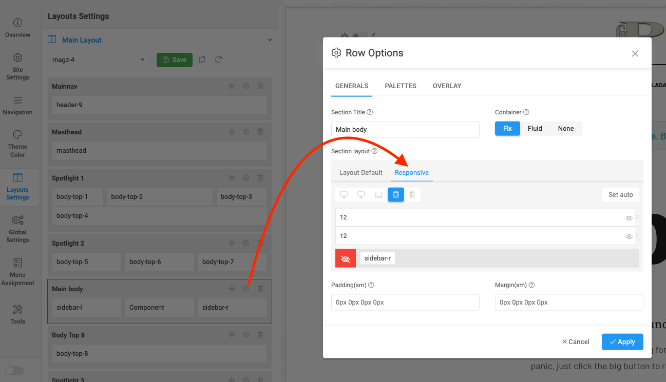 Mobile version disable right sidebar with a custom css code