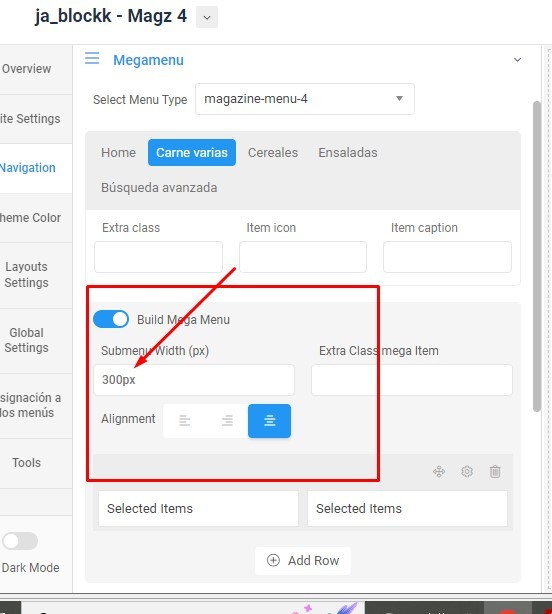 Every time I generate the mega menu for the first time, it stagnates at 300px and cannot be modified or I don't know how to do it.