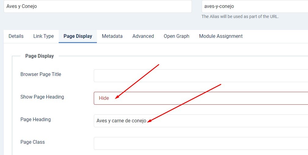 1.- Show Page Heading ---> Hide