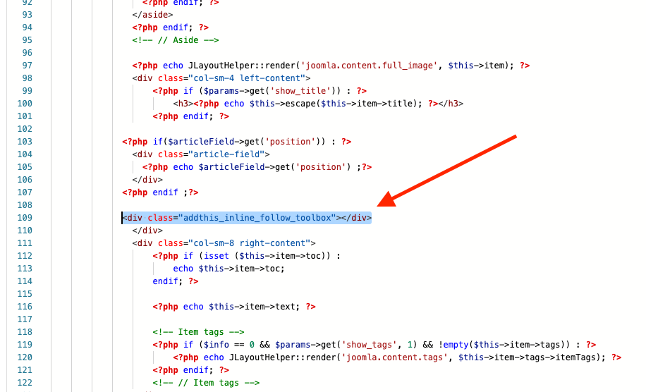 I updated the AddThis code under the 'Custom Code' tab in template and updated this line of code in article layout file also: