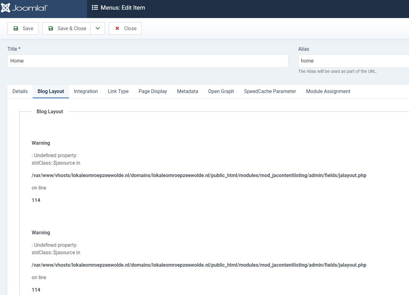 I have 2 warnings on my website, related to the JA-BLOCK template. These are displayed when i pen the menu and click on tab Blog-layout.