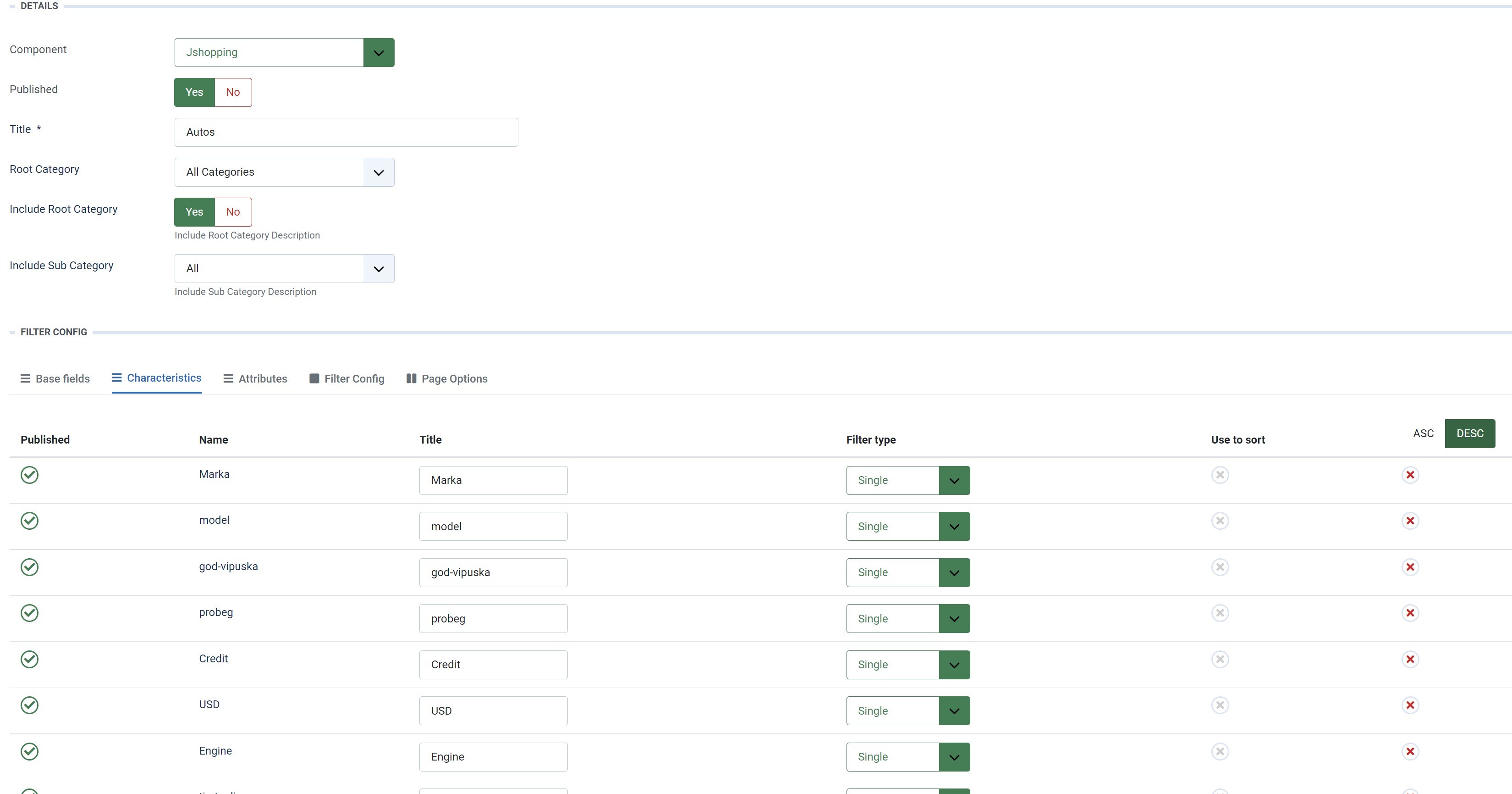i created a menu item with ja megafilter. pointing to megafilter profile ( /auto-in-stock )