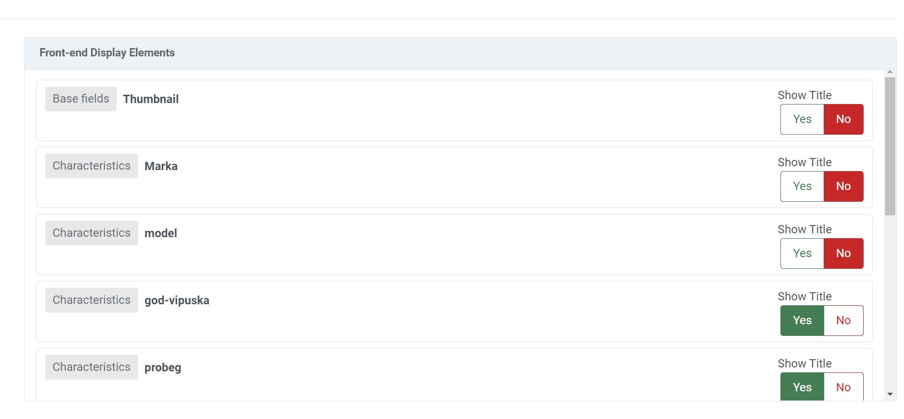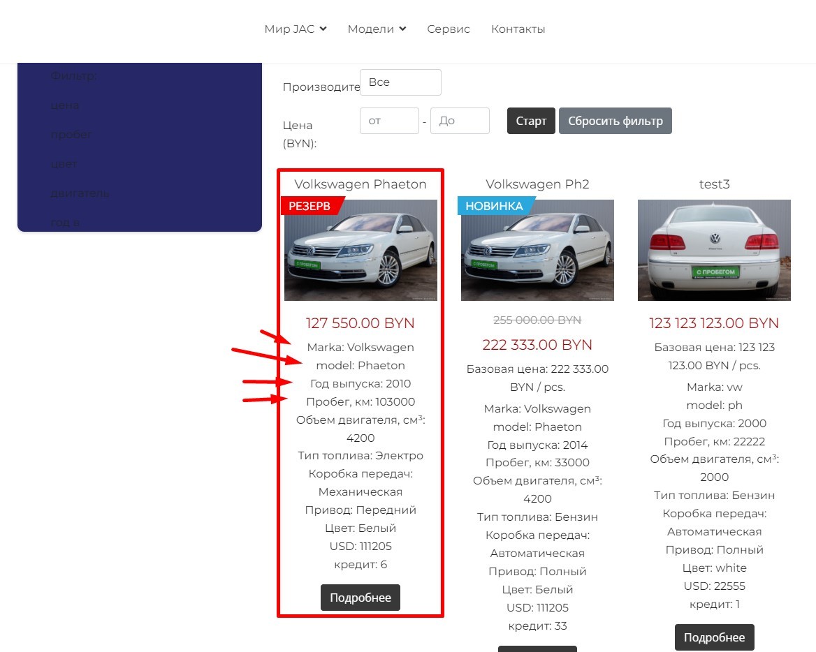 But they are not visible on the site . only base fields are visible ( /auto-in-stock ):