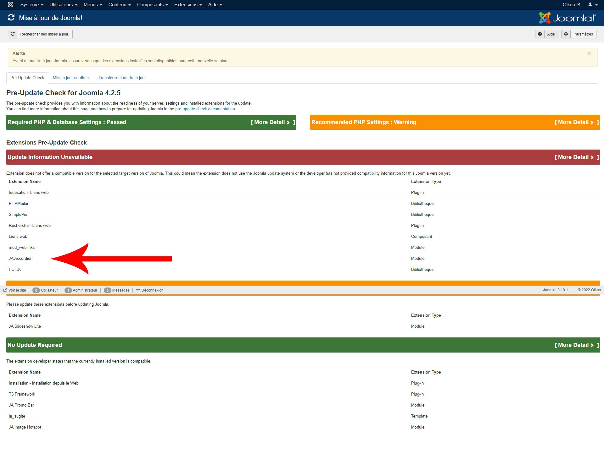 Hi, Please find enclosed an image of Joomla4 migration dashboard. The update information for JA Accordion is not available. Is this module to be updated before migration? If yes, which plan do we have to subscribe? Best regards. Xavier