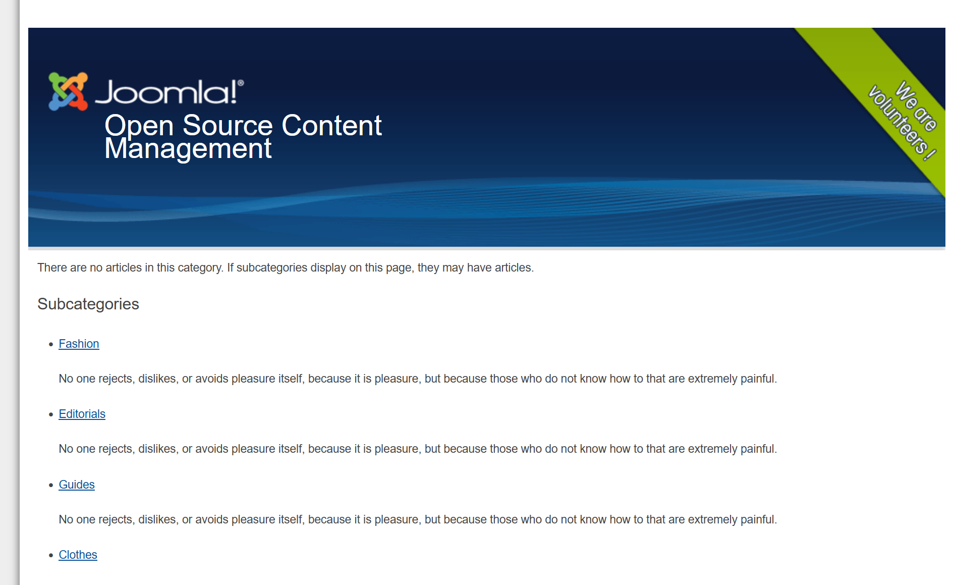 "There are no articles in this category. If subcategories display on this page, they may have articles."