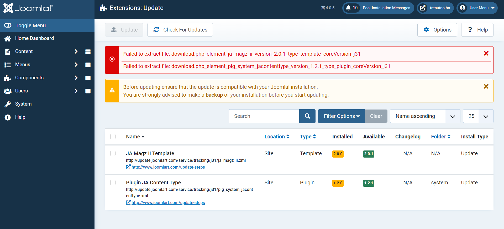 When i try to upload these two extensions i get this message: failed to extract file, that could be the problem?