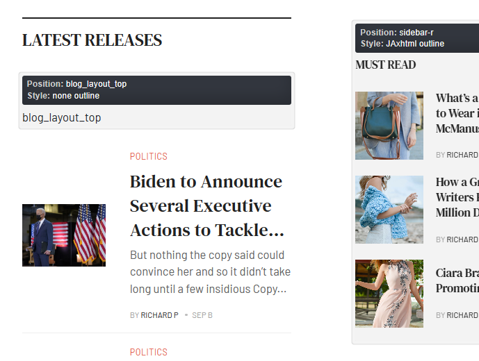 Yet I see Position: blog_layout_top in the /?tp=1 mode but have no idea how to access the position to see any module. Or what is the featured article purpose other than making the title bold (at least I think so).