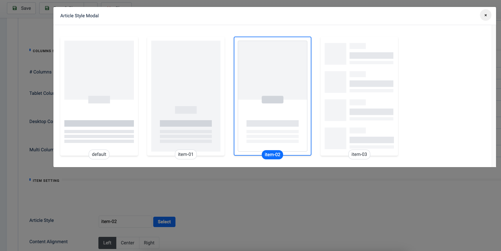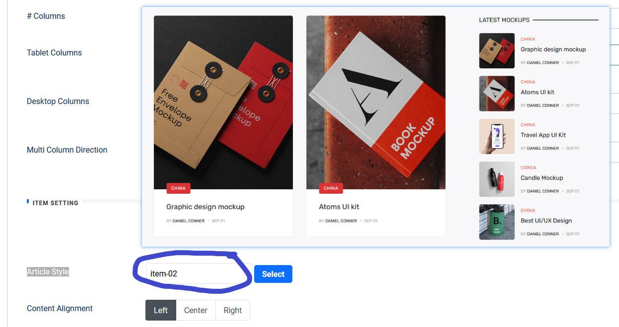 "Article Style" option on menu settings just show 2 options to choose [ecommerce/contents], and have "default" option by default, but the quickstart menu items display one named "item-02", that i suppose is the one make it looks like the photo...