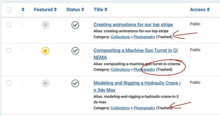 I'm currently testing a site with a newly purchased template - JA Oslo. A fresh install from the Quickstart zip and the front end looks great. My issue is that the articles listed (in Content>Articles) shows every category as trashed. They are not trashed. Is this a known bug? Is there a fix.