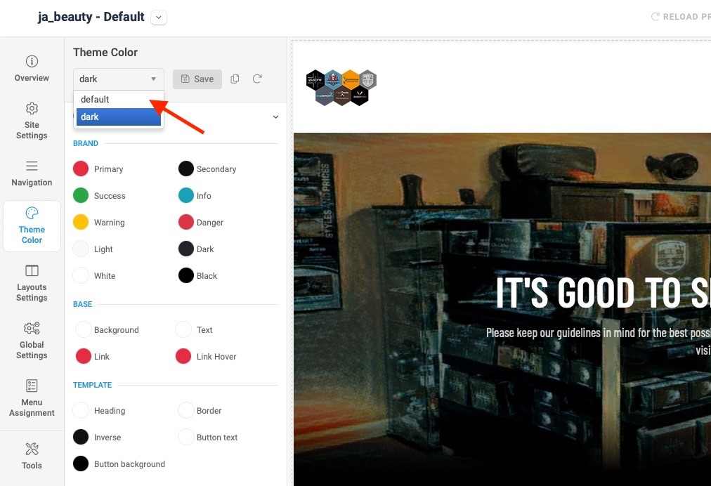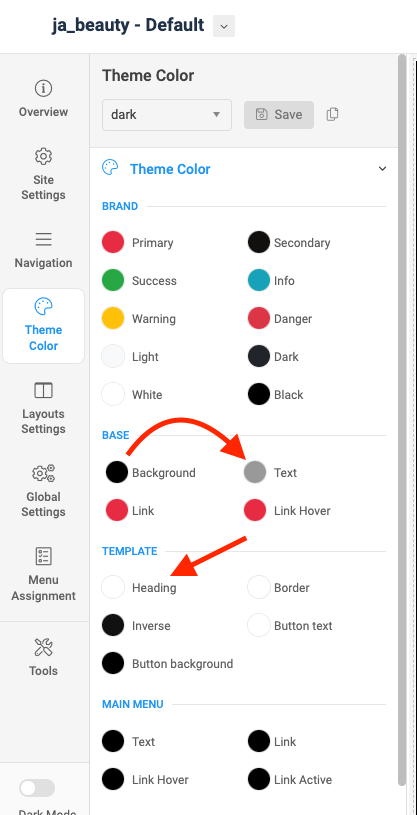 It's correct but make sure that you set up theme colors properly. For instance, in the default template style (assigned for all pages except for homepage) >> Theme color settings >> you're using 'Dark' theme color profile >> you set Background color + Text color + Heading color to 'white':