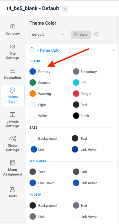 That "brand primary" only changes the color of buttons not the whole template !