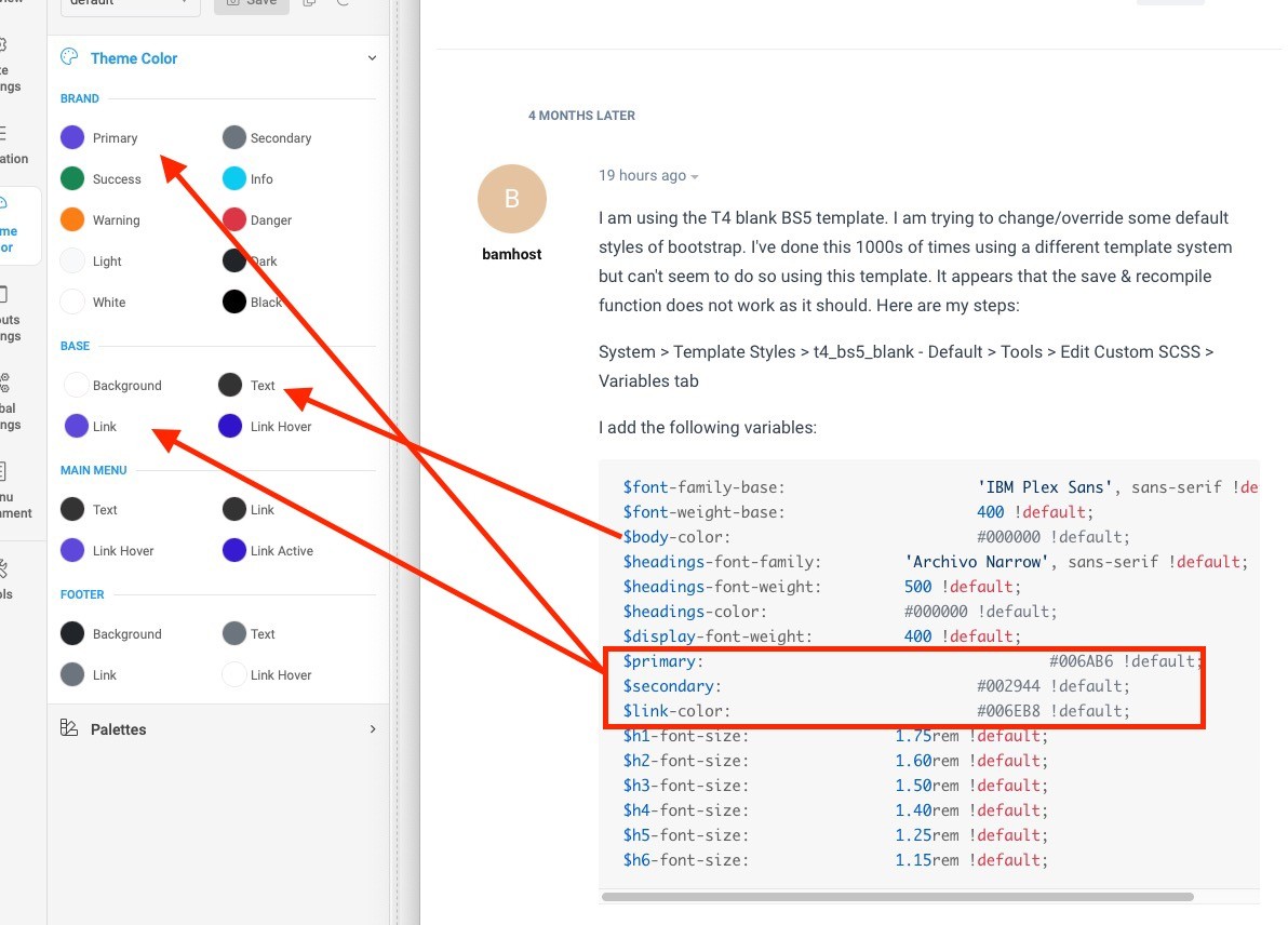 take a look (in: t4_bs5_blank/scss/_variables.scss)