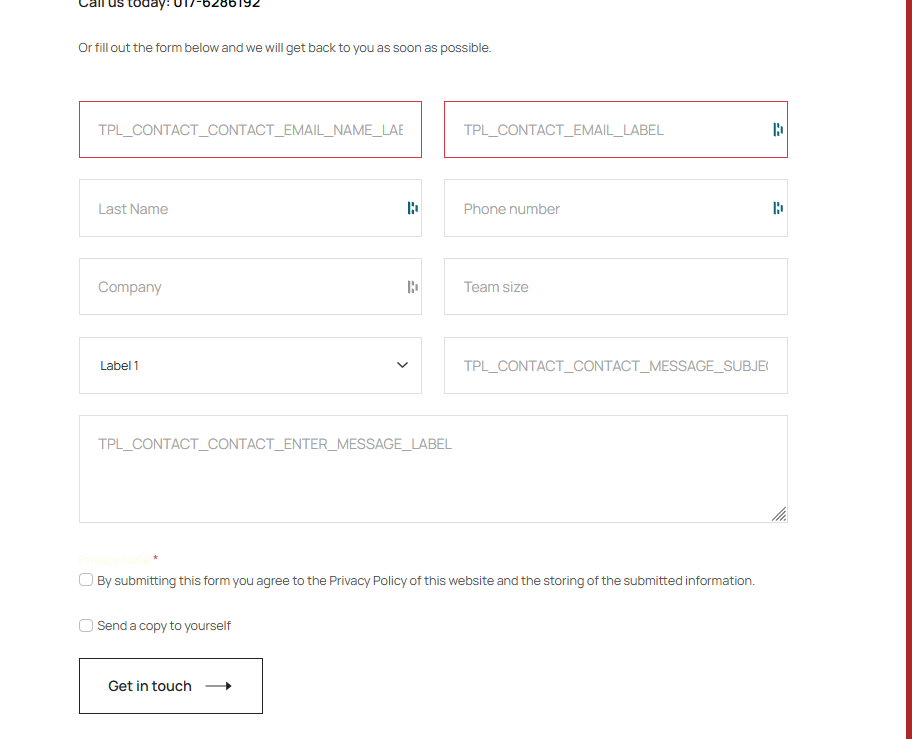 How do i configure the contact us form like choosing what fields are needed. Also why sometimes i get a placeholder text instead of the proper text.