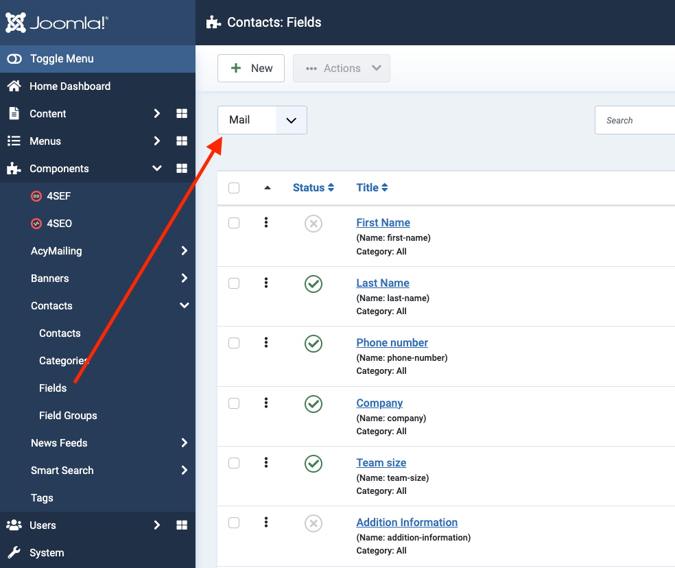 You can see all fields in Component Contact >> Fields >> filter by Mail: