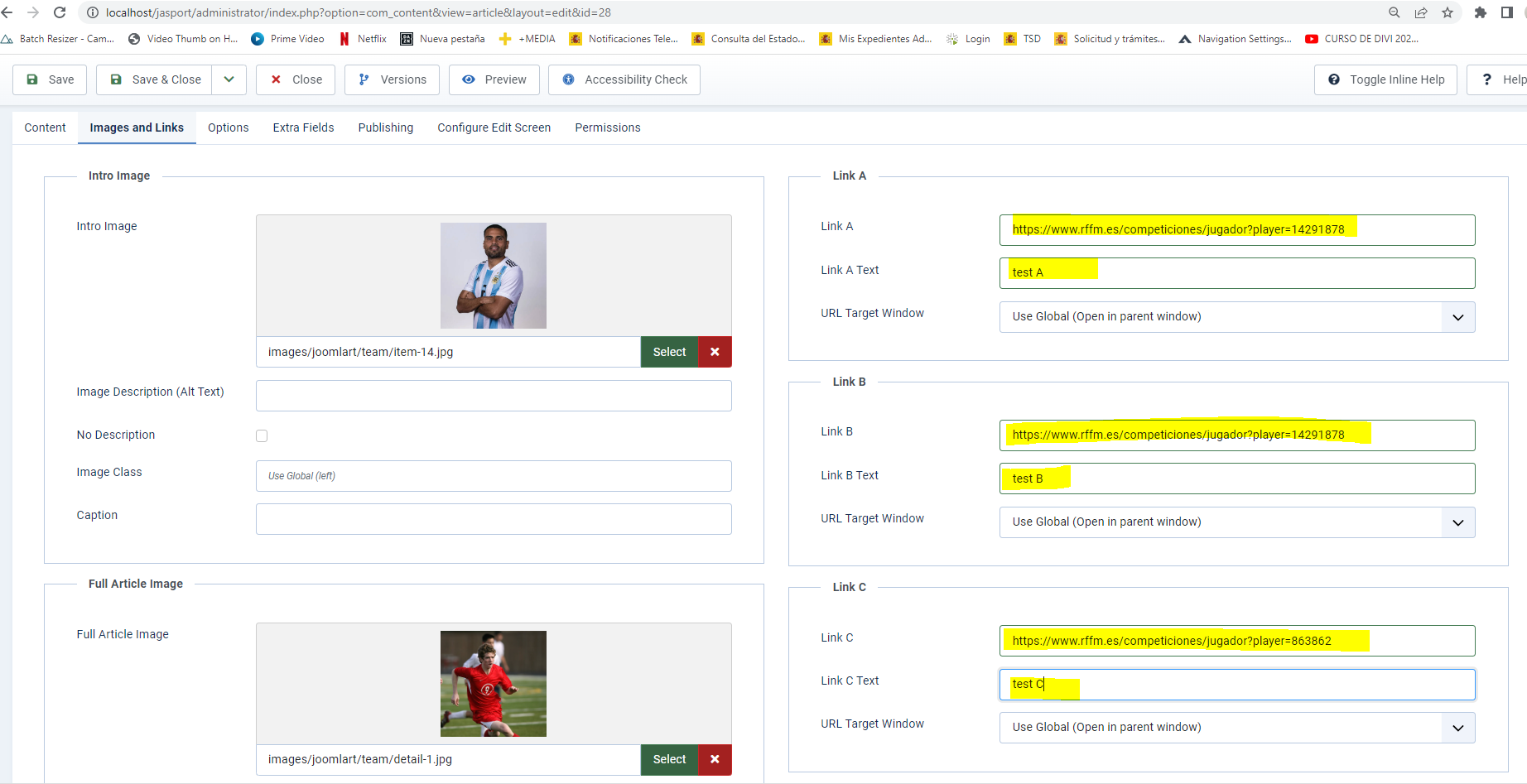 May I know where you want to show the links? because by default, they display in the main content part of article. But in the team layout view, this main content doesn't show.