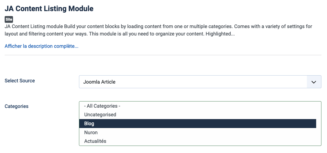 I just installed the module. In the settings I can't select an article category.Otherwise it does not show me any other error
