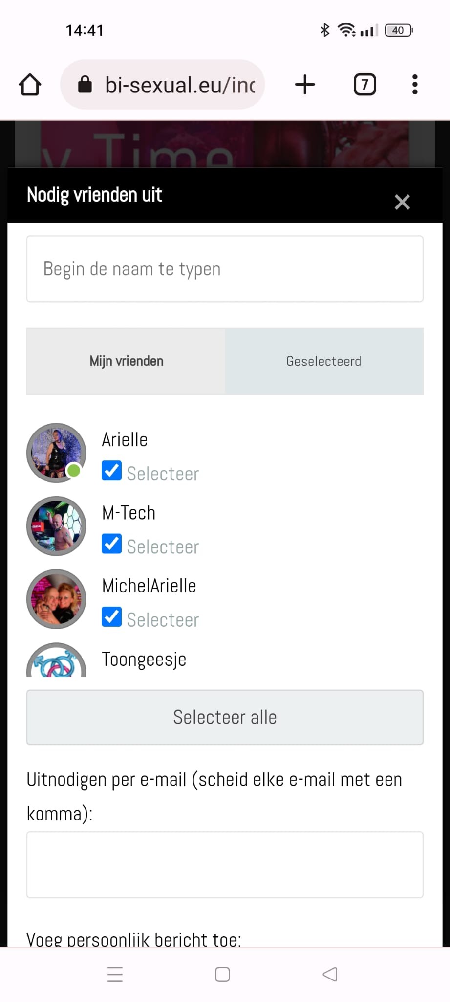 Hey there. Busy testing our new site this week. Problem I encounter is that when inviting friends to an event on a mobile phone the scroll is not there to get to the button send invitation. Waar kan ik die instellingen vinden zodat de popup wel de scroll of knop laat zien