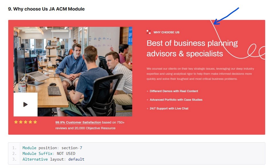 Hi, I've looked through the other discussions and could not find how to remove the loopy line from the " Why choose Us, JA ACM Module" (see image below). Please provide instructions to remove it. Thanks.