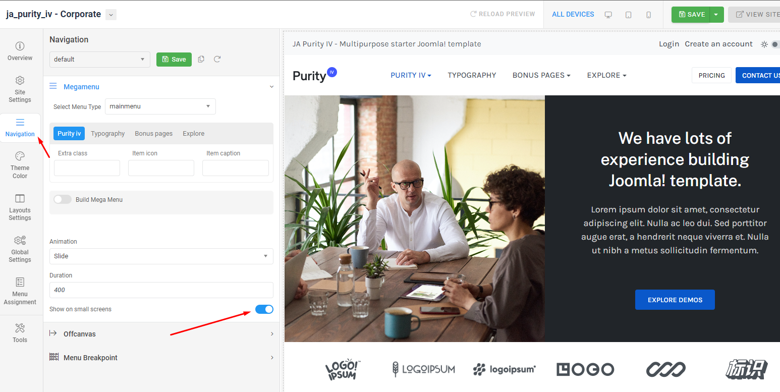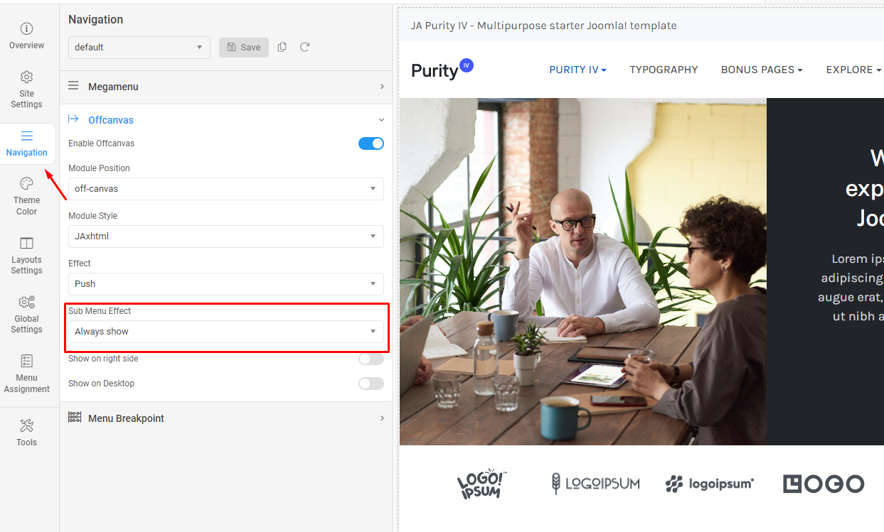 Hello, kindly see the picture regarding OFF Canvas on JA Purity IV, here are my 2 questions regarding that: