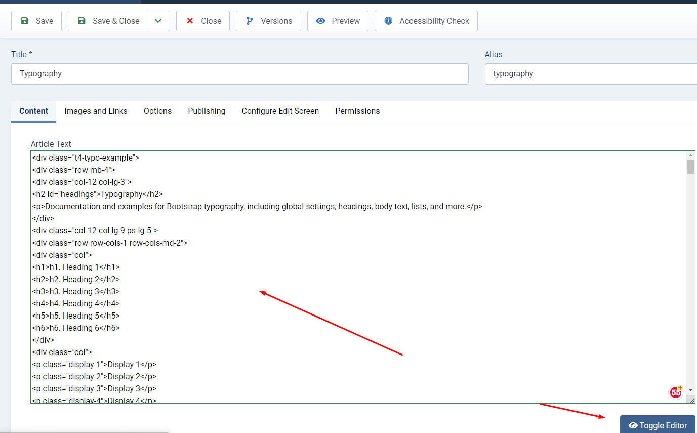 Go to your backend > Content > Articles > Create new then copy/paste the code from the typography.txt file into your article.